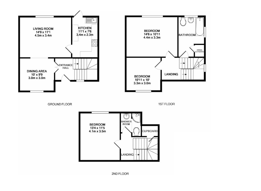 Second floor features a large bedroom with an en-suite shower room.