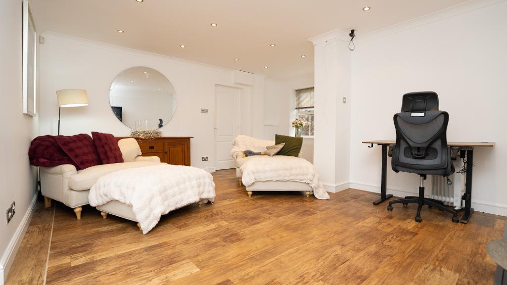 Immaculately presented throughout, this beautifully maintained home offers generous and versatile accommodation ideally suited to modern family living. A particular highlight is the thoughtfully converted double garage, now providing an impressive second reception room, perfect for use as a family room, playroom, home office or entertaining space.
