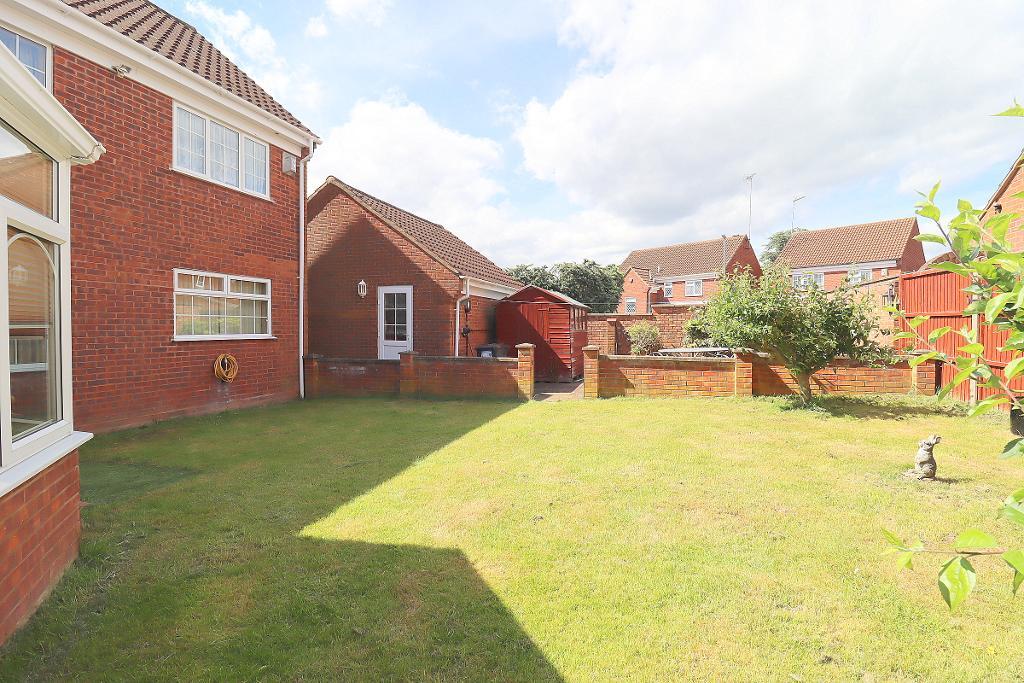 Externally there is a block paved driveway, double garage and front garden with pathway and lawn area. The rear garden benefits from a lawn and patio area and shed.