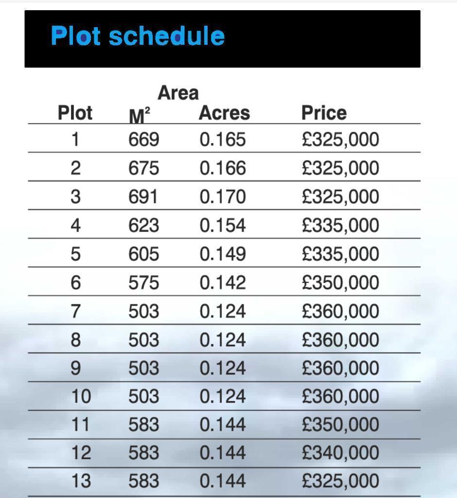 Plots can be secured with a reservation fee of £5,000. Buyers will be required to exchange contracts within eight weeks of their solicitor receiving draft documentation, with legal completion to follow within four weeks of exchange.