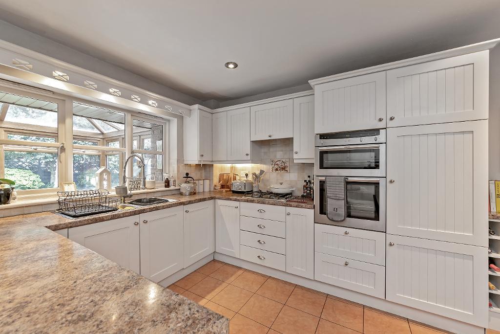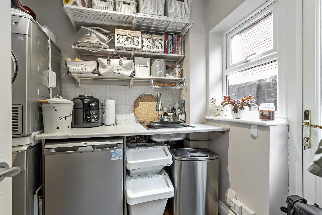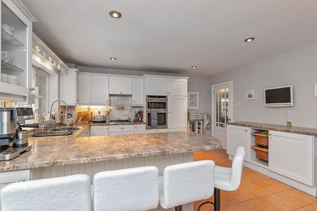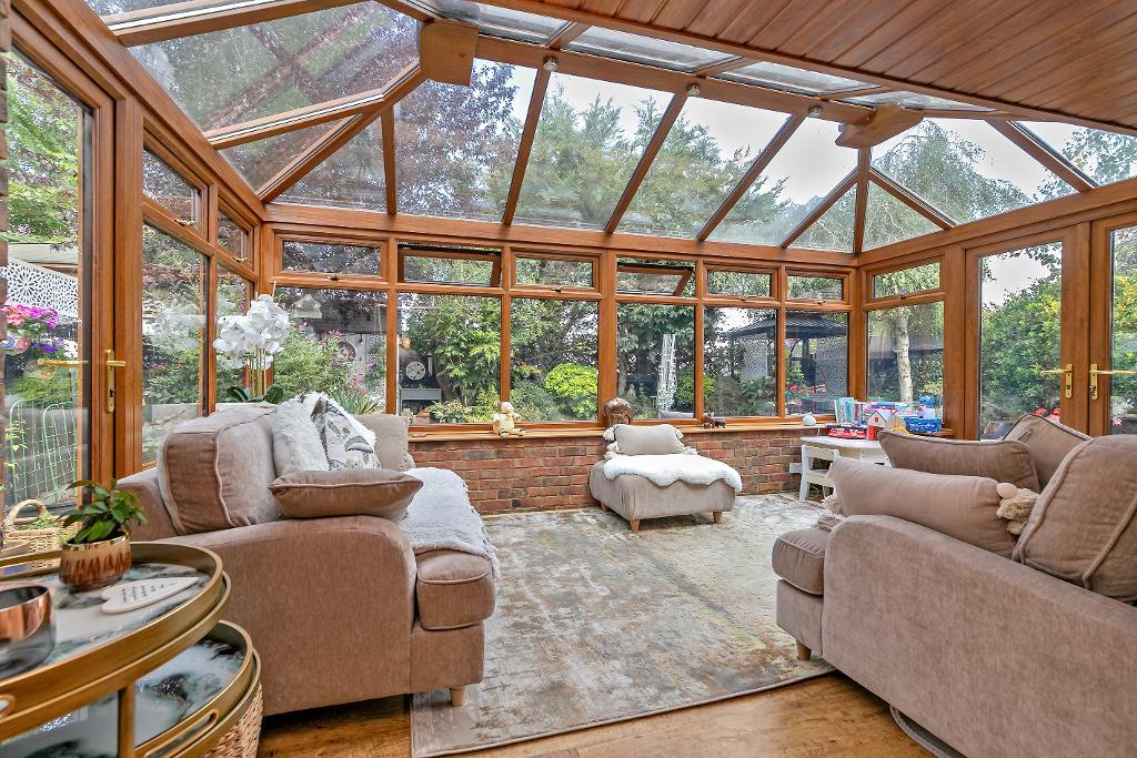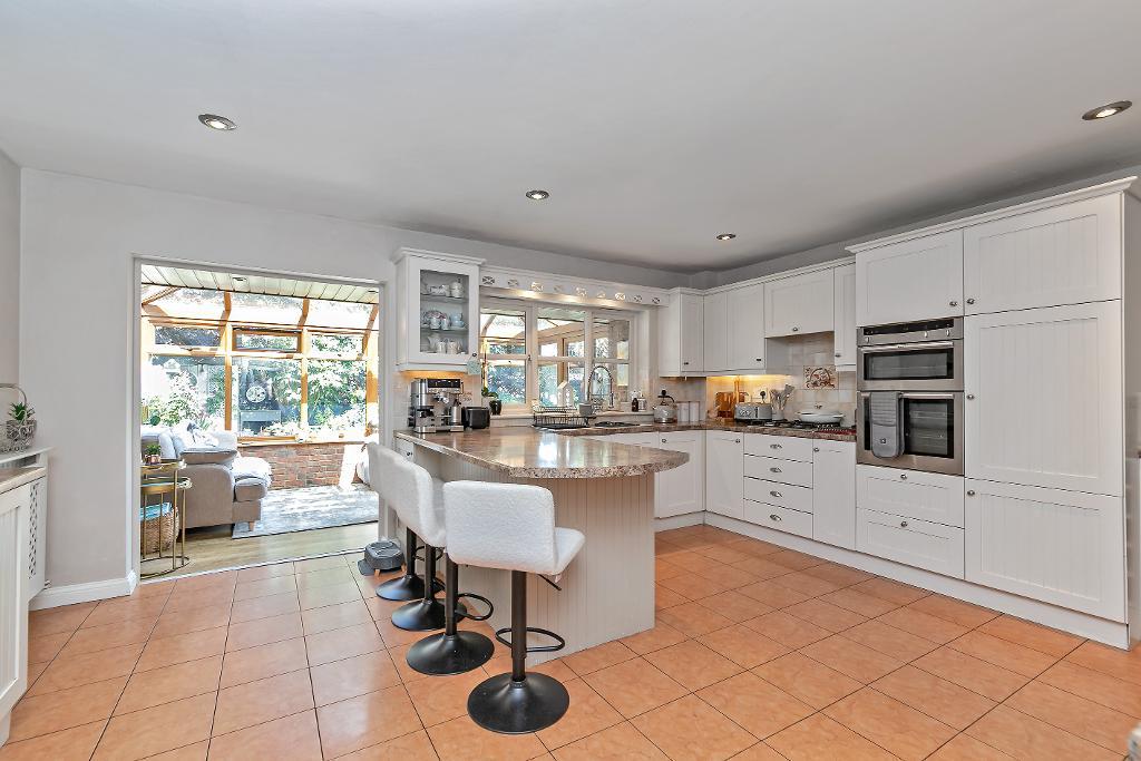 The thoughtfully designed interior provides generous living space across 2 floors floors. A welcoming hallway leads to a stylishly refitted cloakroom with a WC and hand basin. The beautifully presented lounge, features a characterful fireplace, offers a cosy retreat with doors opening onto the rear garden. At the heart of the home, an expansive open-plan kitchen/family room opening onto a large conservatory which is bathed in natural light from large windows and French doors. The modern kitchen boasts high-end integrated appliances, including a fridge/freezer and dishwasher, with space allocated for a range cooker. A separate utility room adds practicality, ensuring a well-organised living space.