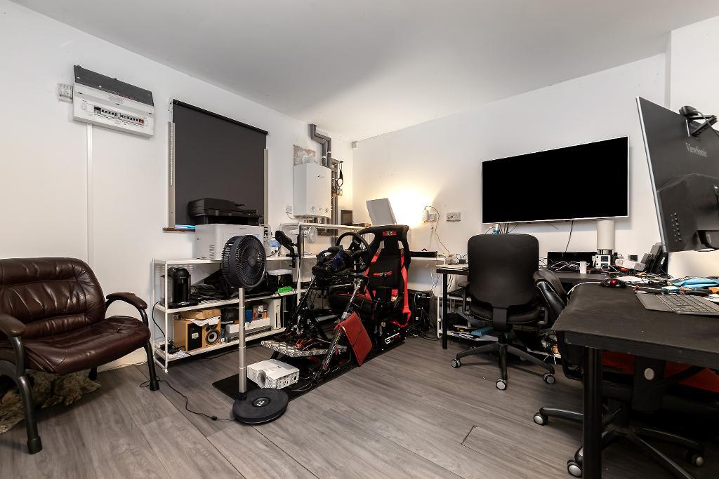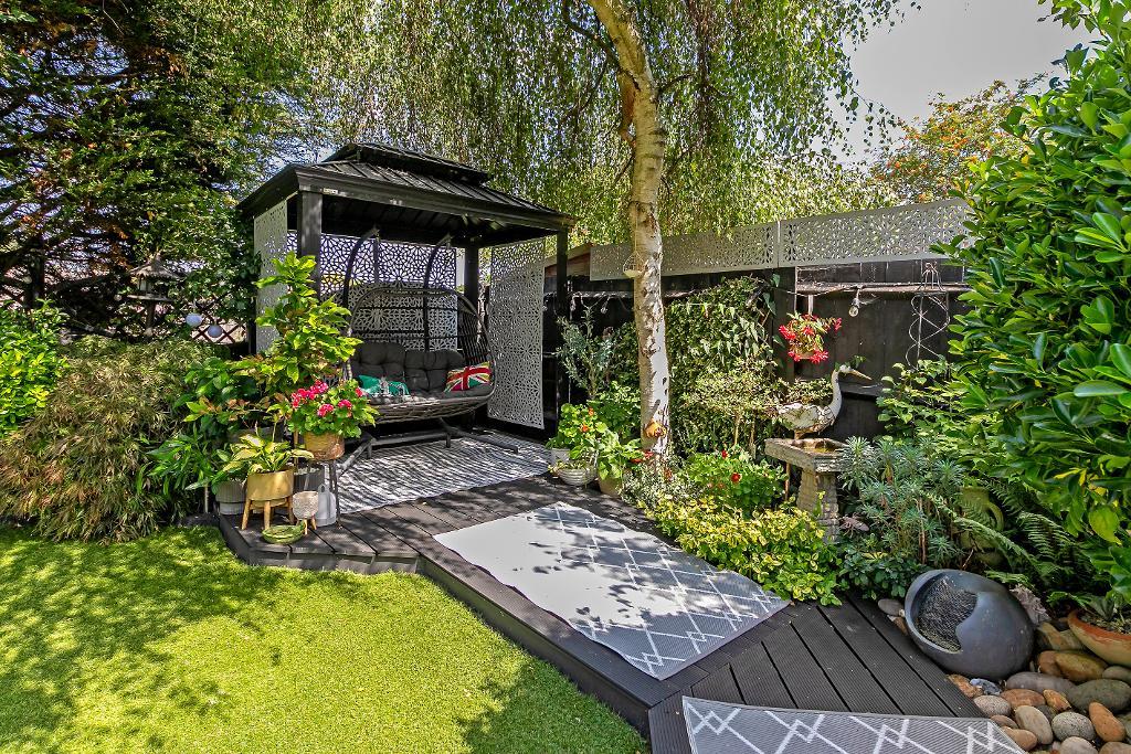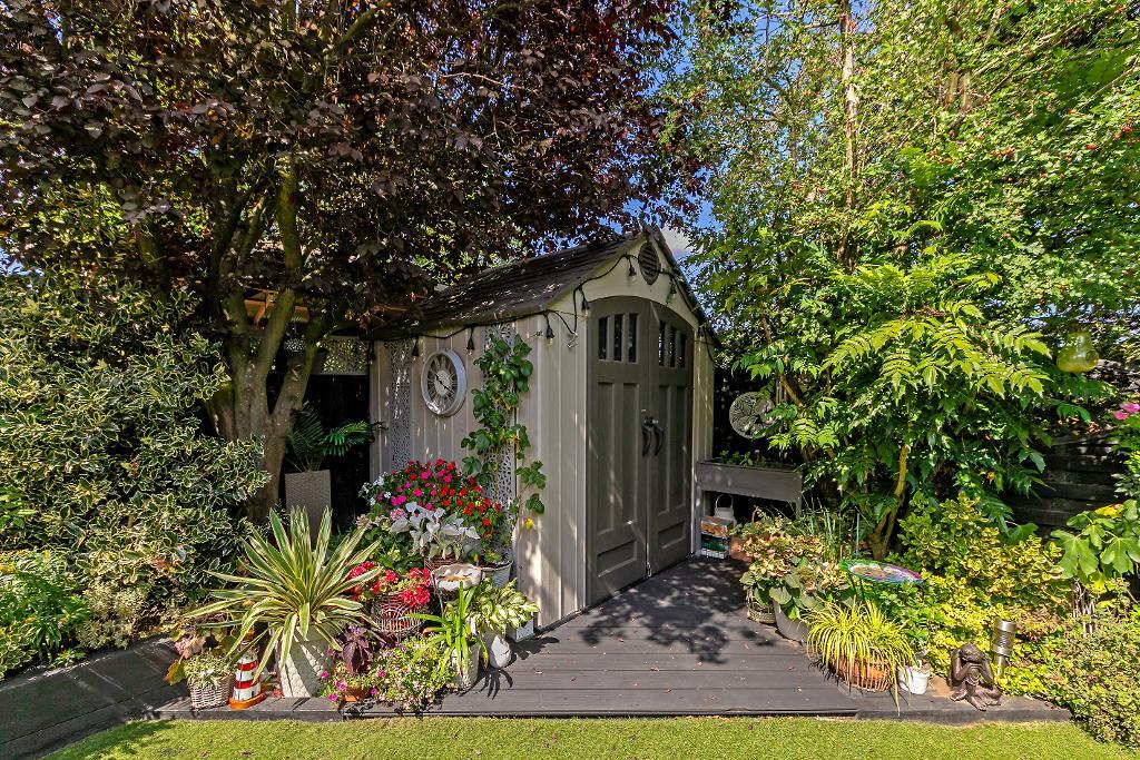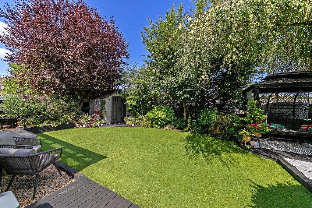 Externally, the property offers an inviting, sun-filled landscaped rear garden with a decked areas, ideal for outdoor gatherings and relaxation. The double garage has been partially converted into a games room, gym, or study, adding versatility to the space. A driveway accommodates 2 vehicles, complemented by additional garage space and side access to the garden.