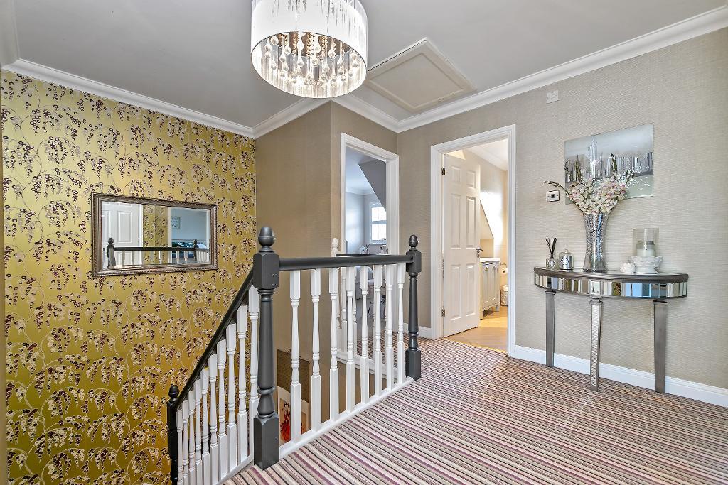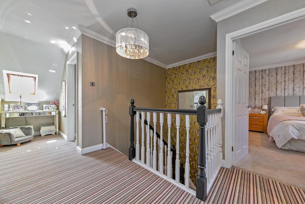 The first floor comprises four double bedrooms, including a principal suite with an en-suite shower room and a dedicated built in bespoke wardrobes . A luxurious four-piece family bathroom completes this level. .