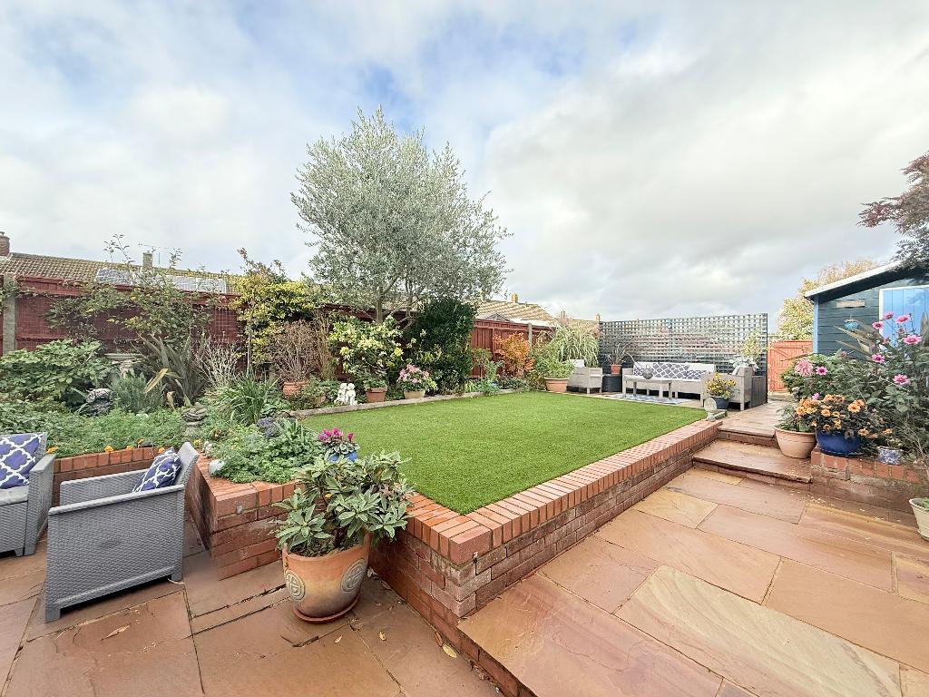 Externally, the property benefits from a large block-paved driveway providing off-road parking for up to three vehicles, with attractive shrub borders and secure side access to a garage block and additional rear parking. The beautifully landscaped rear garden offers an artificial lawn, patio area ideal for entertaining, a workshop, and a variety of mature flower and shrub borders.