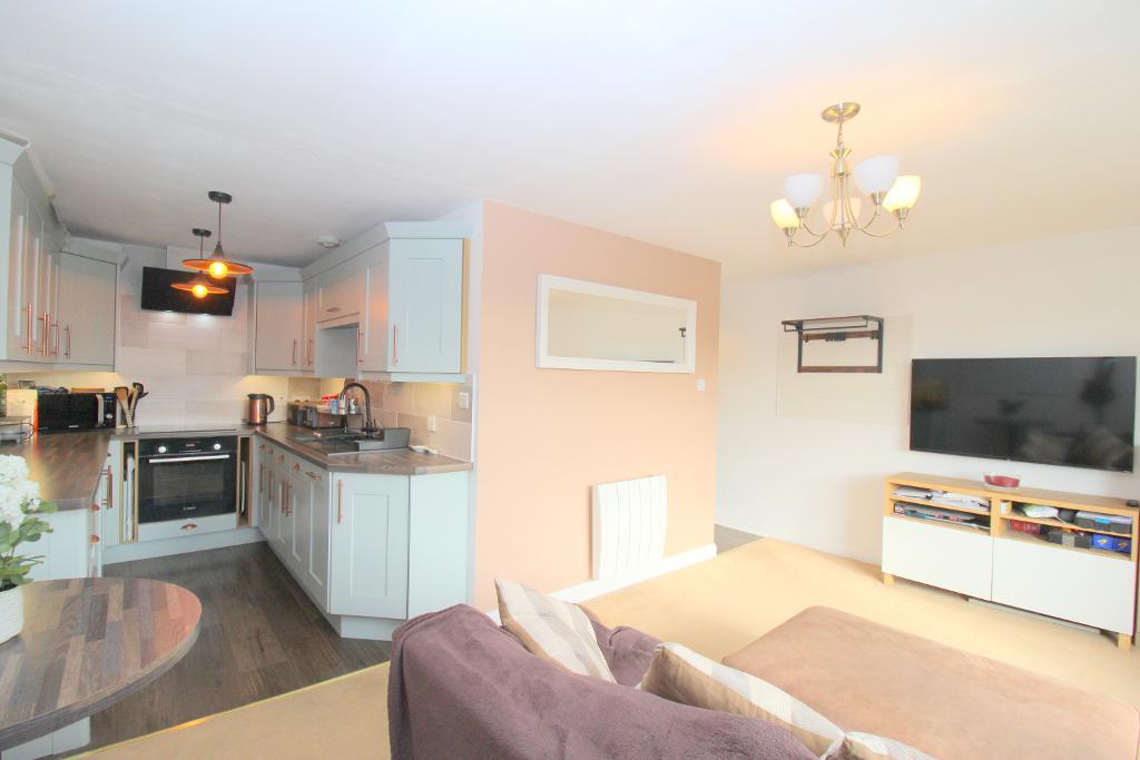 The bathroom is fitted with a clean, modern suite and is well-proportioned, while the lounge offers a cosy yet spacious area perfect for relaxing or entertaining and boasts triple glazed windows. Leading off the lounge is a re fitted separate kitchen, which is neatly laid out with ample cupboard and worktop space, making it ideal for everyday cooking and hosting guests. The layout of the living area into kitchen offers a sense of flow while keeping the two spaces distinct.