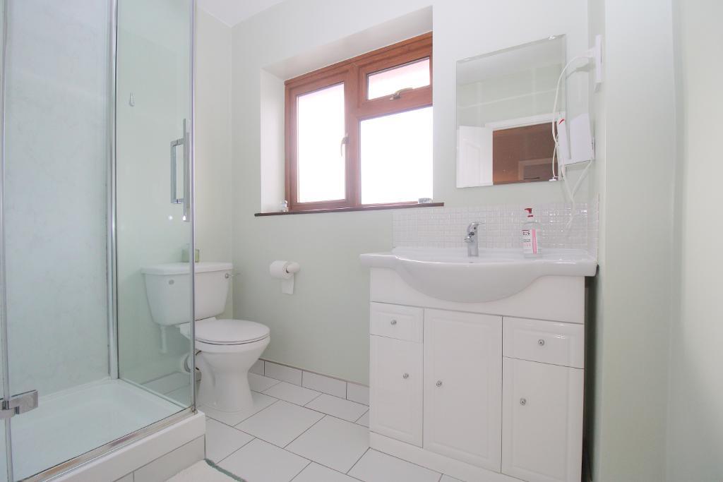 To the first floor, the property offers three generous double bedrooms and a large single, all benefiting from fitted laminate flooring and double-glazed windows. The master bedroom features a beautiful double-glazed bay window and fitted wardrobes. The family shower room is finished to a high standard, fully tiled and fitted with a white suite including a WC and a spacious double shower cubicle.