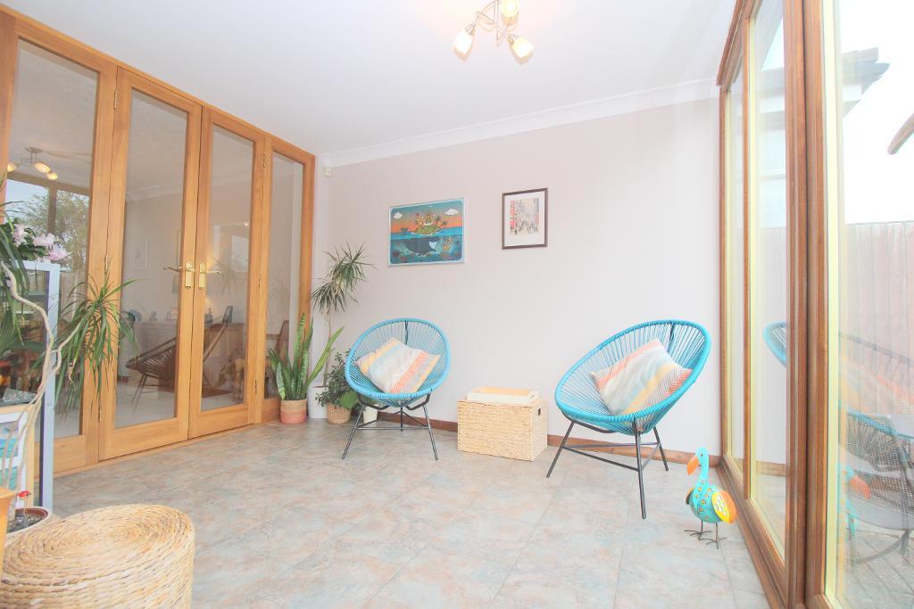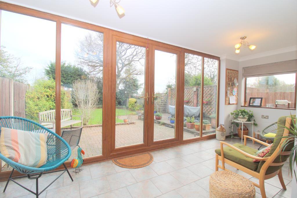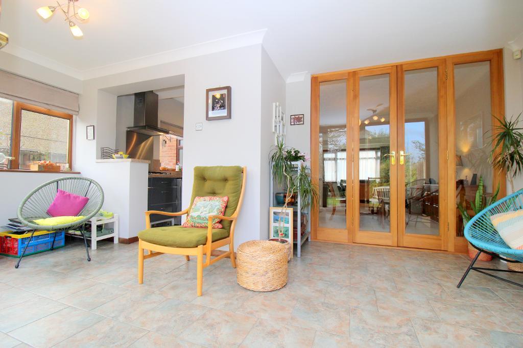 The open-plan lounge/diner is a superb space for both relaxation and entertaining, complete with a double-glazed bay window, fitted carpets and French doors leading into the extended sun/sitting room which boasts under floor heating and a wall of windows letting in that all important natural light. The kitchen is well arranged with a range of fitted eye-level and base units, an integrated gas oven and hob with extractor, and designated spaces for a washing machine, dishwasher, fridge and freezer.