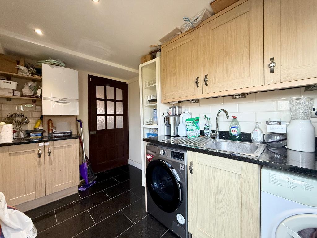 Internally, the property briefly comprises an entrance porch and a cloakroom fitted with a wash hand basin and WC. There is a bay-fronted lounge featuring a fireplace, stairs rising to the first floor, and French doors opening onto the rear garden, along with a spacious bay-fronted dining room. The kitchen/breakfast room benefits from a range of wall and base units, an inset sink unit, built-in appliances, ceiling spotlights, tiled flooring, and a breakfast bar. There is also a utility room with additional wall and base units, an inset sink, space for appliances, tiled flooring, and a door leading to the rear garden. This in turn opens into a second utility area with further storage units.