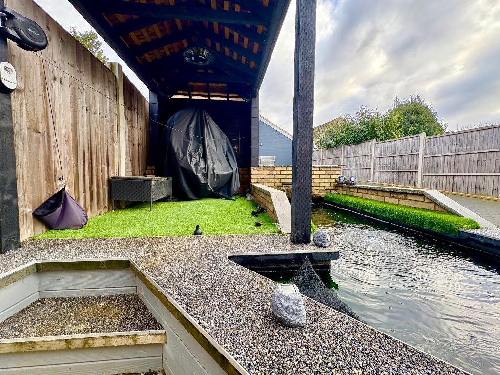 Outside, a beautifully landscaped, low-maintenance garden with a water feature and gazebo creates a tranquil space to enjoy warmer months. A large annex offers flexible use as an office, games room or guest space, complete with a fourth bedroom and shower room , ideal for extended family or independent guests. To the front is a secure, gated driveway with ample parking for several vehicles.