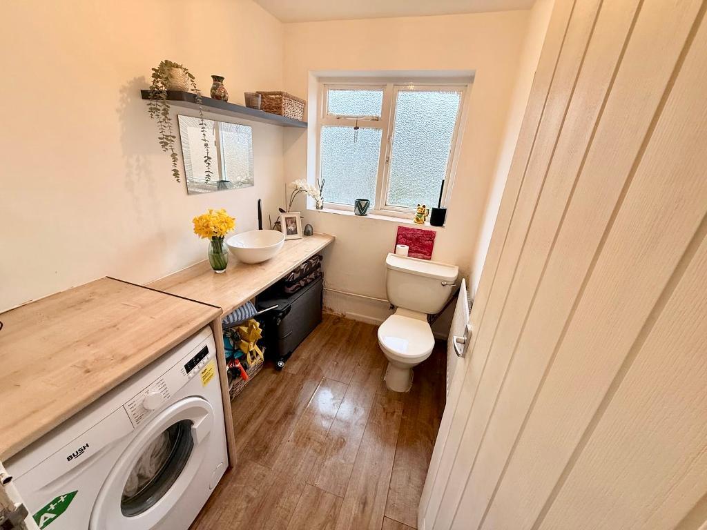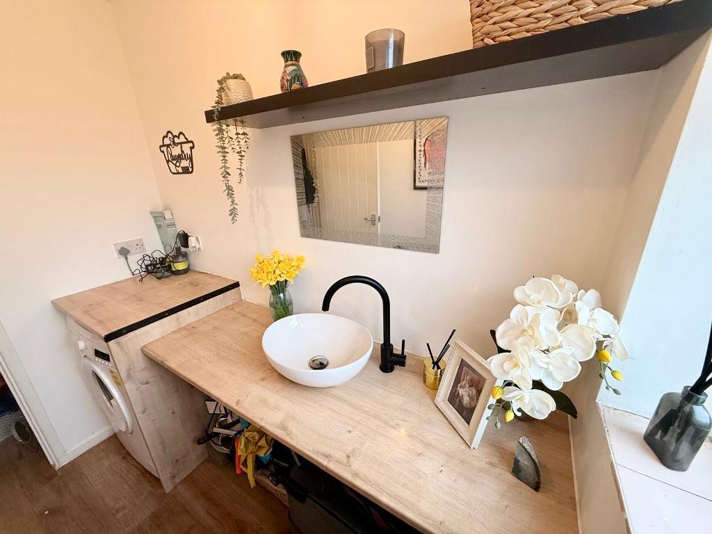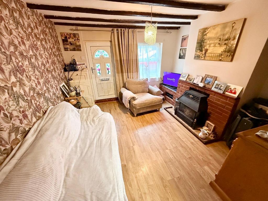 Internally, the cottage offers a warm and welcoming feel throughout. The ground floor features a cosy lounge with a characterful feature fireplace, creating an inviting living space. To the rear is a modern white gloss kitchen providing space for appliances, which leads to a rear lobby and a useful utility room with WC. This area previously served as the family bathroom prior to the current owner relocating it to the first floor.