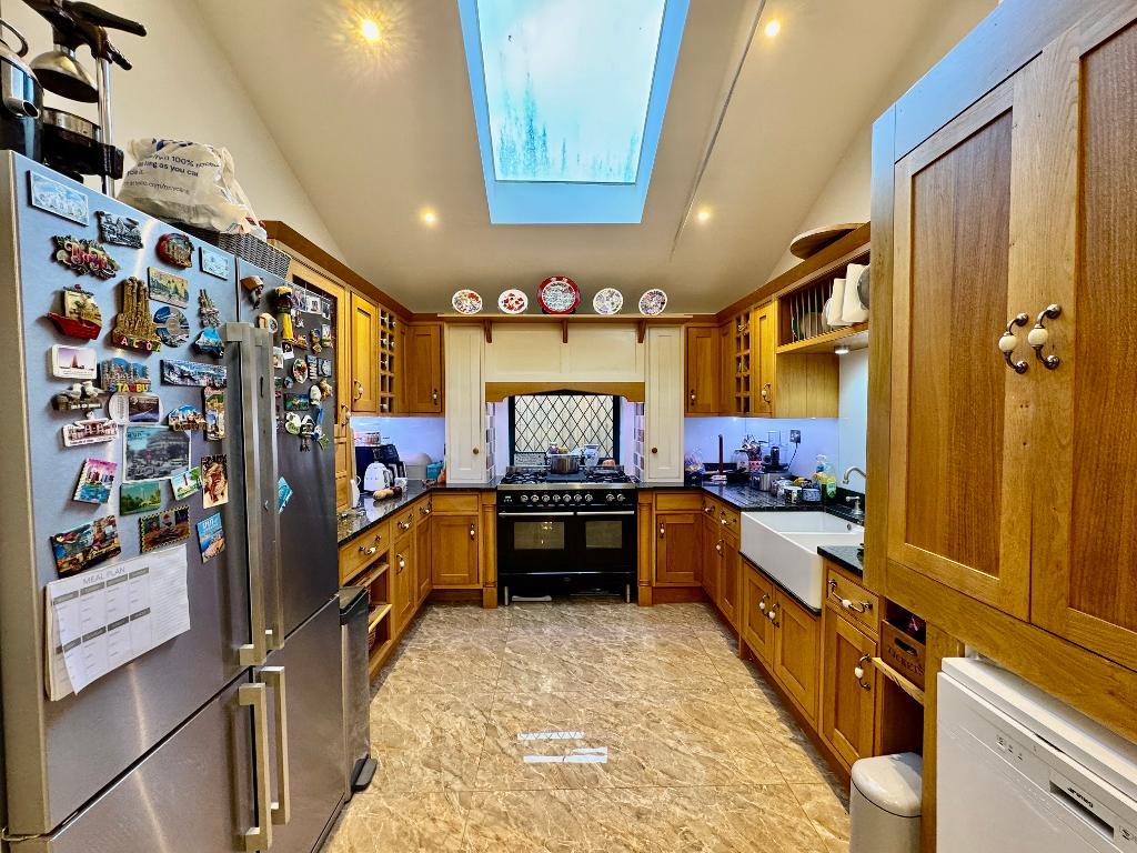 The accommodation opens into a generous lounge/dining room, leading through to a high quality fitted kitchen featuring stylish contemporary units, complementary work surfaces, an integrated Butler sink and space for a range cooker. Adjoining the kitchen is a substantial family dining area, which also lends itself perfectly to use as an additional sitting room providing excellent flexibility.