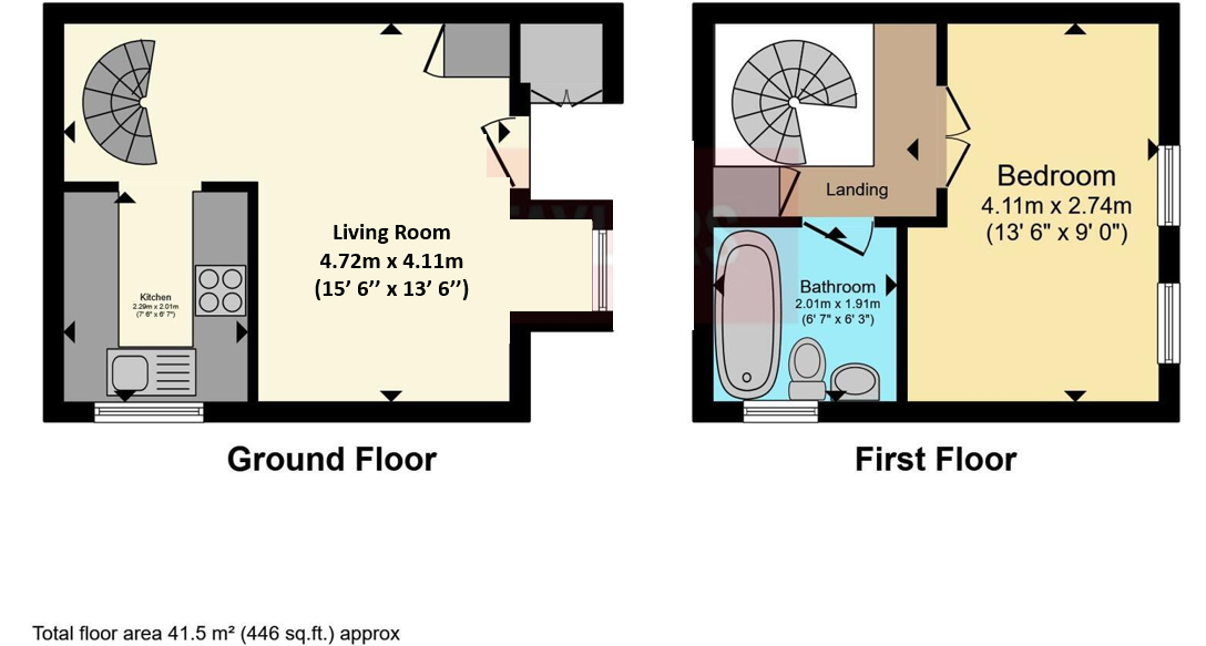 Internally, the property offers a bright lounge/diner with a spiral staircase leading to the first floor. The kitchen is fitted with a range of wall and base units, an inset sink unit, and provides space for all necessary appliances.