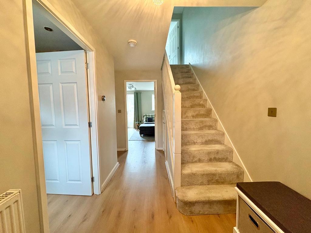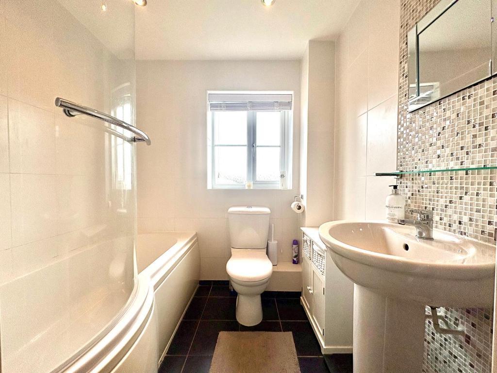 Upstairs, there are two generous double bedrooms, both light and airy, alongside a well-presented white family bathroom suite.