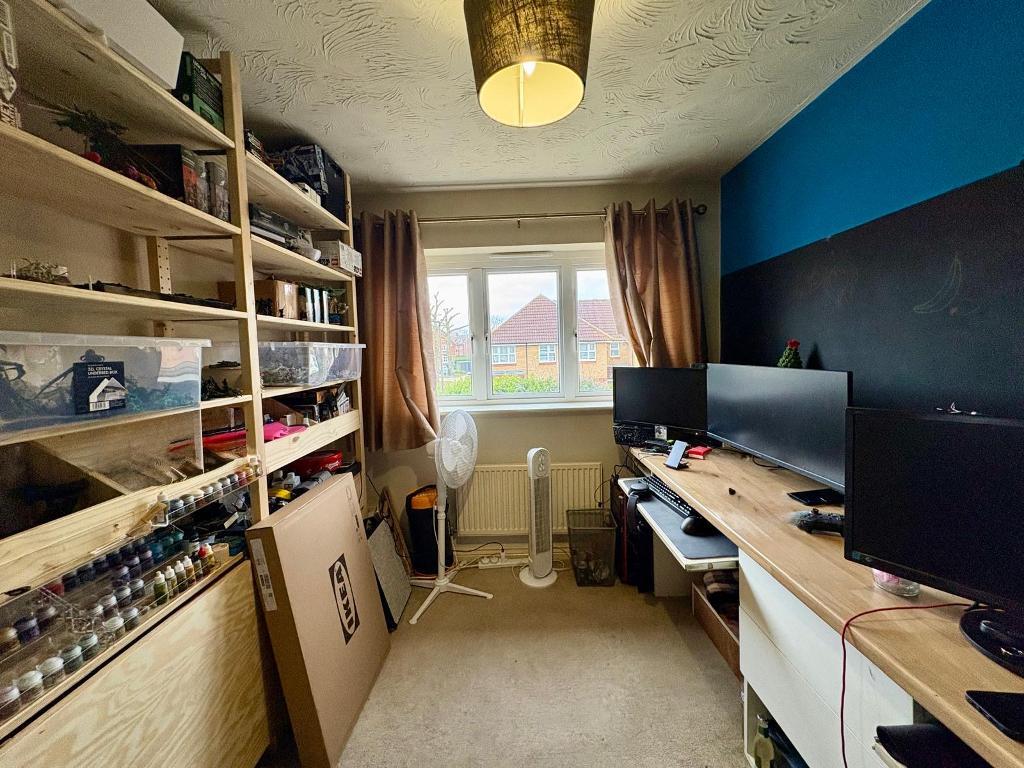 The first floor offers three well-proportioned bedrooms, with the main bedroom featuring built-in storage. A bright and airy family bathroom completes the accommodation.
