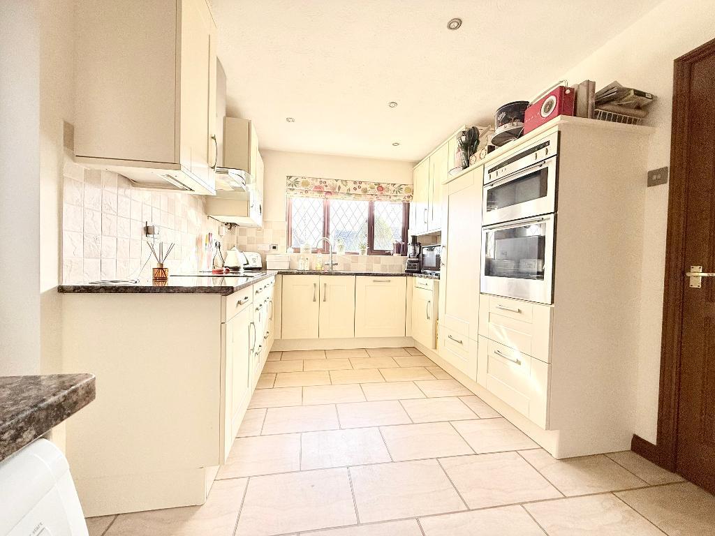 The kitchen/breakfast room has been tastefully refitted and features granite worktops, a built-in double oven, integrated fridge and dishwasher, with additional space for a washing machine. A side door provides useful access to both the front and rear of the property.