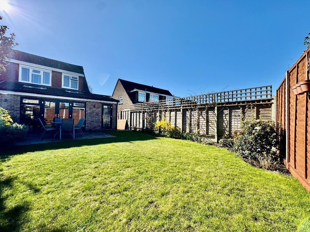 Externally, the property features a large block-paved driveway providing off-road parking for multiple vehicles. Side access leads to the rear garden, which is predominantly laid to lawn and complemented by a patio area, creating a pleasant outdoor space for relaxation and entertaining.