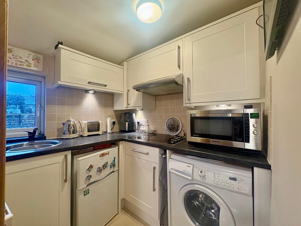 Internally, the apartment benefits from its own private entrance, with stairs rising to the first floor where a small landing provides access to a fitted bathroom suite. There is a separate modern kitchen, well laid out and practical in design, along with a spacious 20ft living area featuring double glazed windows overlooking the High Street, allowing for plenty of natural light.