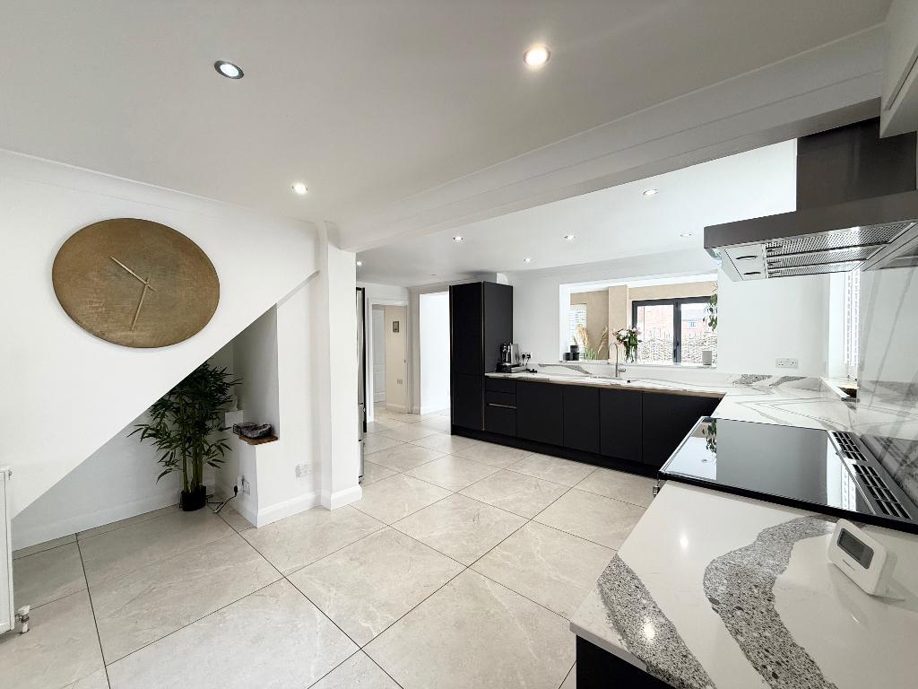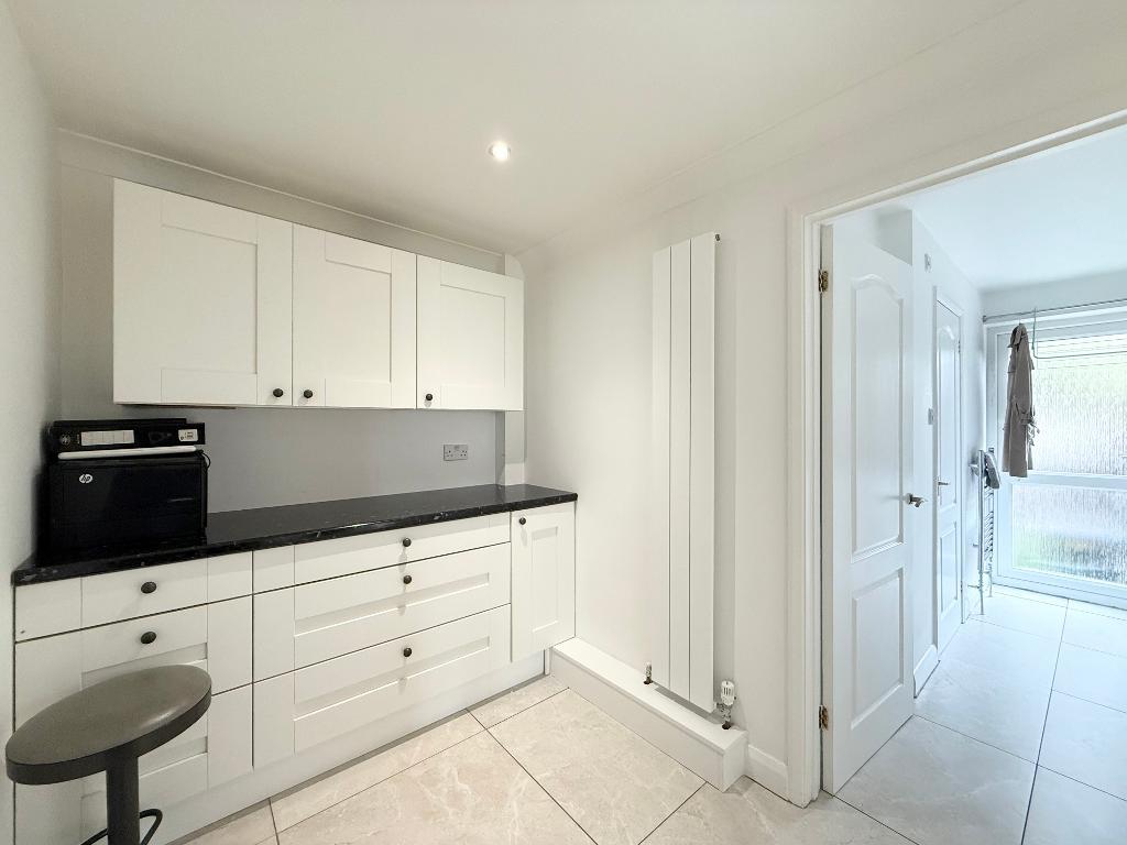 At the heart of the home lies a truly stunning, contemporary kitchen, thoughtfully designed with a sleek handleless range of base units with Cambria Quartz worktops and fitted hot tap along with an inset sink, and a central island ideal for both casual dining and social gatherings. There is ample space for an American-style fridge/freezer and Range cooker, alongside integrated appliances, stylish tiled flooring, and modern spot lighting, creating a bright and sophisticated space. A separate study provides the perfect work from home environment, while a well-equipped utility room/WC offers additional practicality, complete with storage units, appliance space, and direct access to the garden.