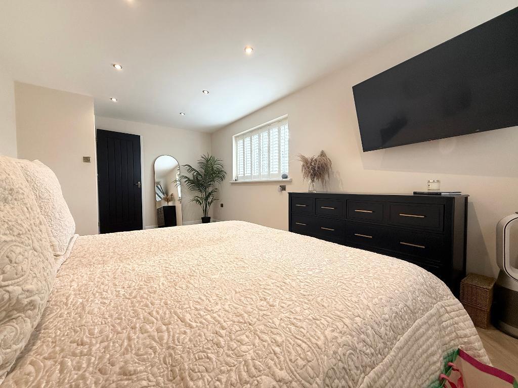 Adding further appeal, the property includes a self-contained annex ideal for guests, extended family, or potential rental income. This fantastic space comprises a living room with bi-folding doors opening onto the garden and a stylish fully tiled bathroom with bath, wash basin, and WC.