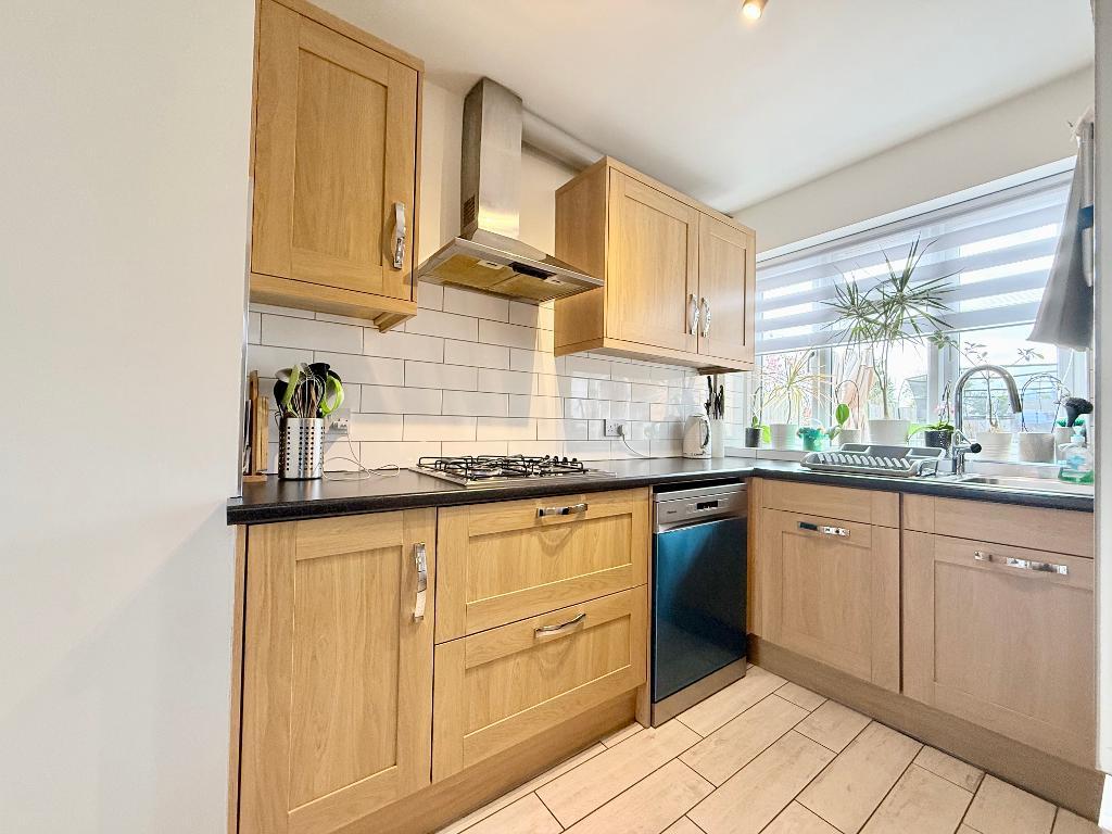 The property briefly comprises an entrance hall leading to a spacious lounge/diner, featuring patio doors opening onto the rear garden. The fitted kitchen benefits from underfloor heating and offers a range of wall and base units, an inset sink, built-in oven, hob with extractor, and space for additional appliances.