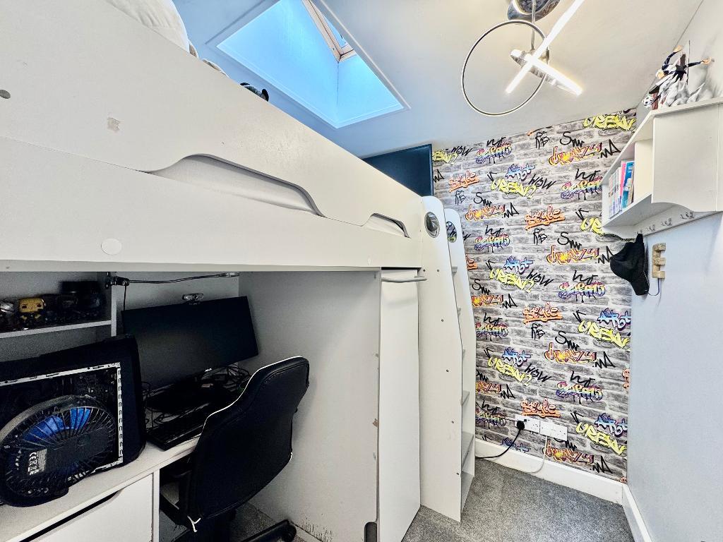 The property has been adapted to provide three bedrooms, all comfortably proportioned, along with a contemporary bathroom fitted with a panelled bath, overhead shower, wash hand basin, and WC.