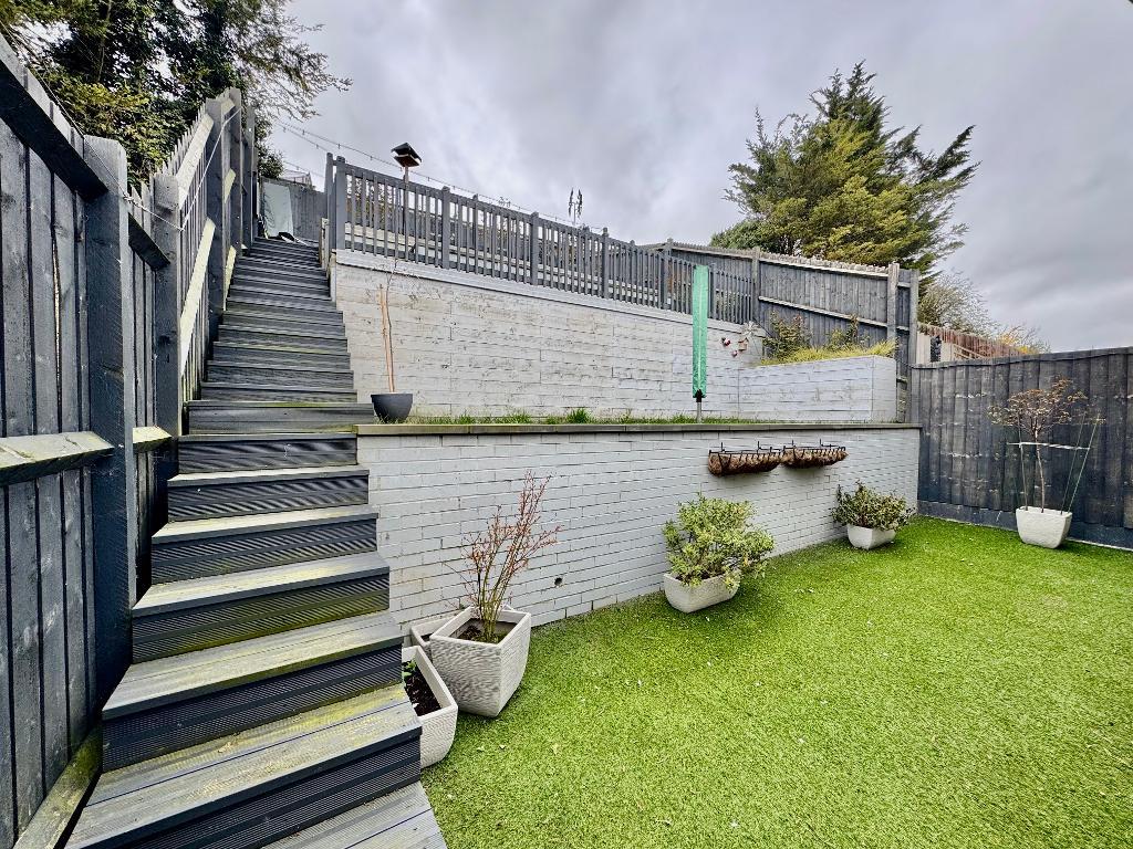 Externally, the south-facing rear garden is a standout feature. Beautifully landscaped, it offers a tranquil outdoor space complete with a raised seating area, ideal for entertaining, alfresco dining, or simply enjoying the surroundings.