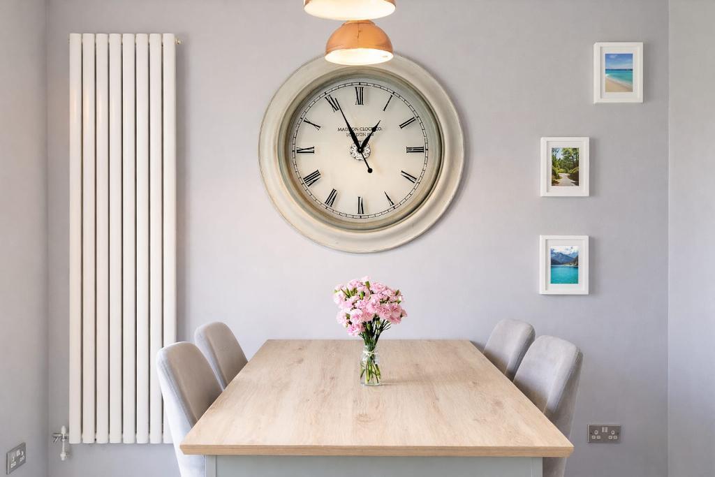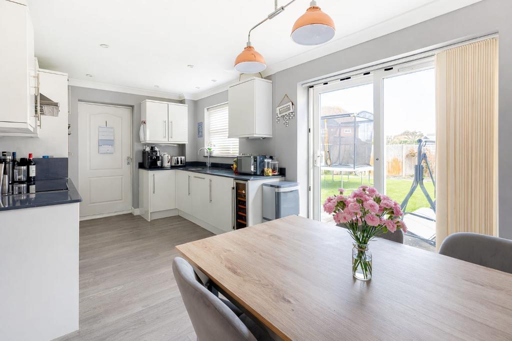 Internally, the home has been meticulously maintained and thoughtfully styled, creating a refined yet welcoming living environment. The ground floor features a beautifully proportioned lounge, ideal for relaxation, alongside a stylish, well-appointed kitchen seamlessly opening into the dining area, perfectly designed for both everyday living and entertaining. A cloakroom adds further practicality.