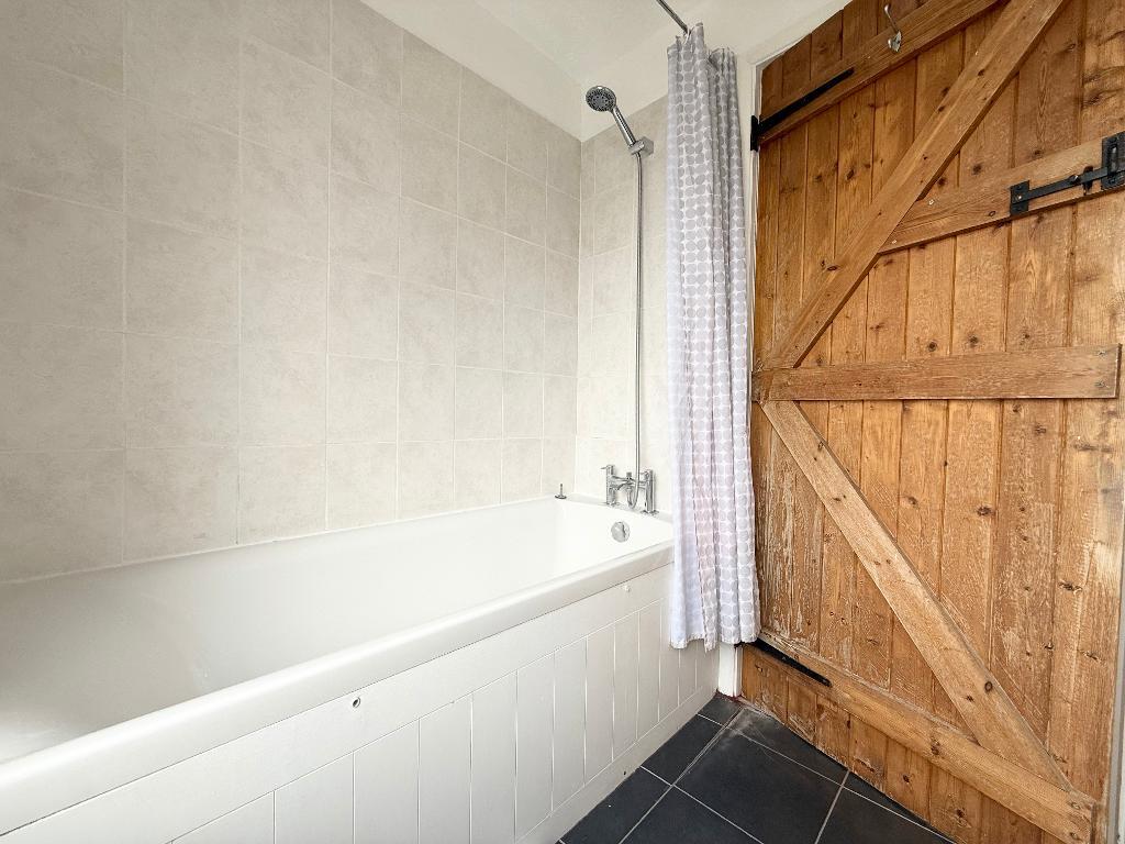To the ground floor, the accommodation comprises a well-proportioned living room, a fitted kitchen, and a separate utility room, providing excellent functionality. Upstairs, a bright landing leads to a stylish bathroom and an impressive 16ft bedroom, featuring a striking vaulted ceiling with exposed beams adding to the properties unique charm and sense of space.