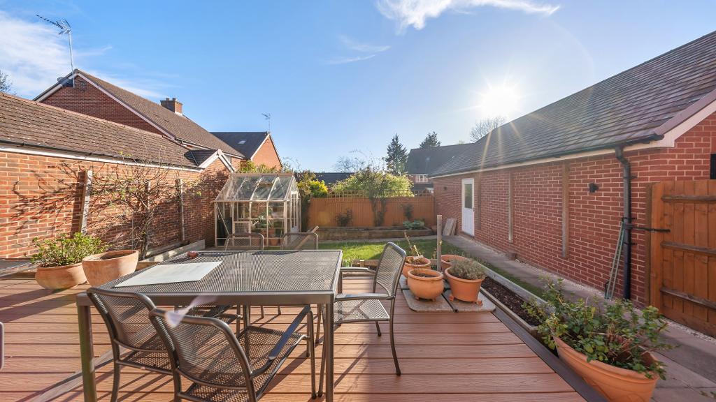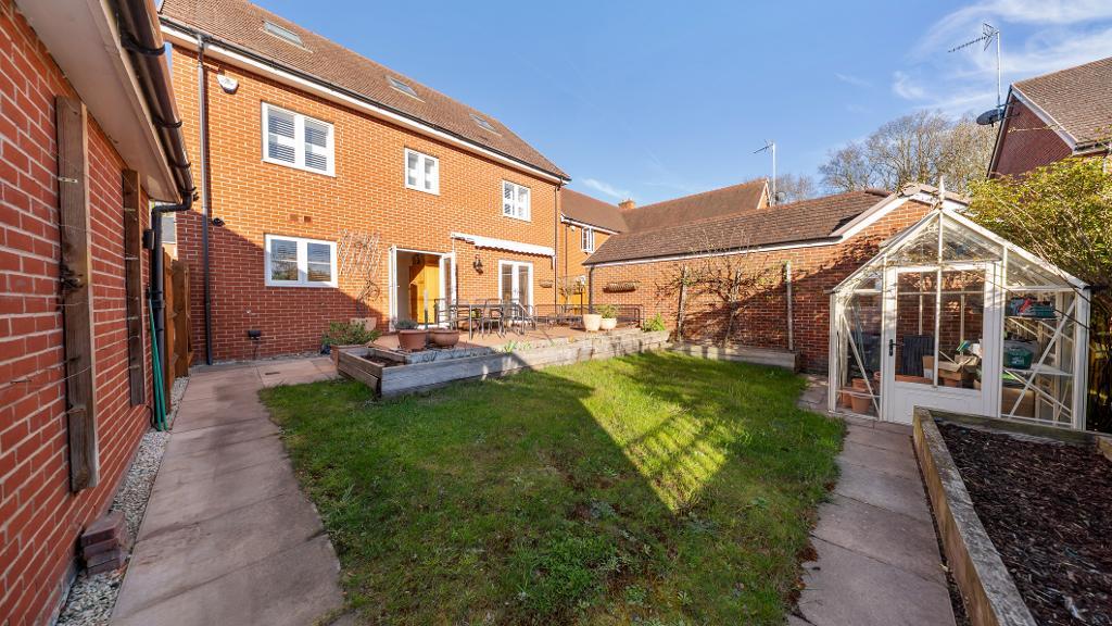 Externally, the landscaped rear garden is a real highlight, private, sun-filled, and thoughtfully designed with decked seating areas, ideal for outdoor dining and entertaining. The 17ft garage offers excellent potential for conversion into a gym, home office, or games room (subject to planning), while the driveway provides off-road parking for two vehicles.