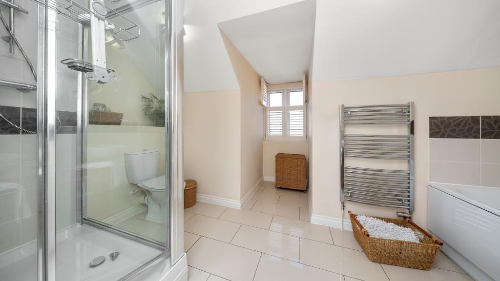 Upstairs, the first floor offers four well-proportioned double bedrooms, with bedroom two benefiting from its own en-suite, while the remaining bedrooms are served by a modern family bathroom complete with a bath and shower attachment, WC, wash basin, and heated towel rail. The property truly stands out with its stunning principal suite occupying the entire second floor, featuring fitted wardrobes, a dressing area, and a beautifully refitted en-suite shower room.
