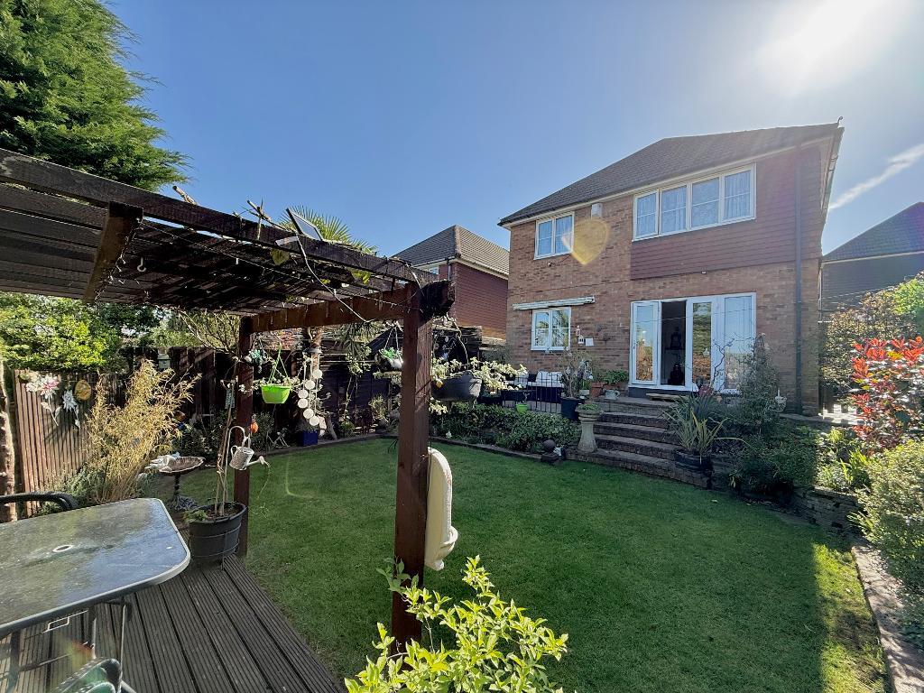 Externally, the property benefits from a block-paved driveway leading to a garage, a front garden laid to lawn with established shrubs, and a well-maintained rear garden featuring a lawn, patio and decking area, complemented by a variety of flowers and planting.