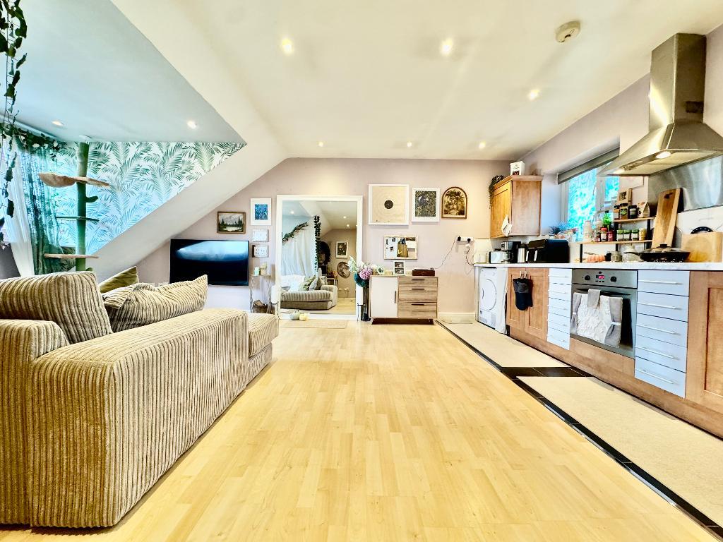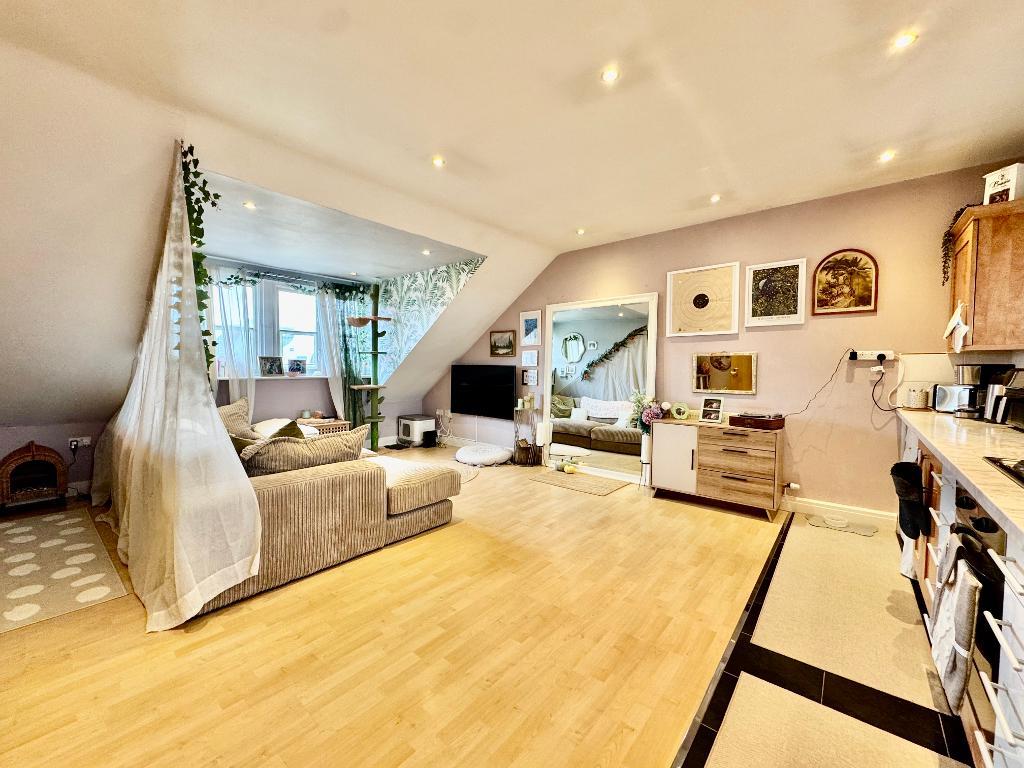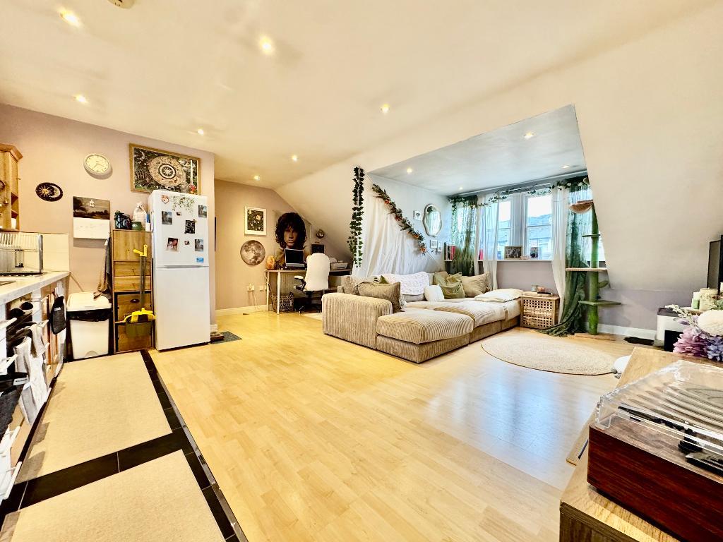 The front door opens up into the good sized entrance hall with doors leading into all the rooms. The large open plan living area has gas central heating and fitted laminate flooring along with double glazed windows. The kitchen area has fitted eye and base level units along with an integral oven/hob and further space for white goods. The lounge/diner offers great space and there is also a partitioned area ideal which is currently being used as a home office. The large bedroom has fitted laminate flooring and boasts a fitted wardrobes. The bathroom has been tiled and has a shower over the bath and fitted white suite.